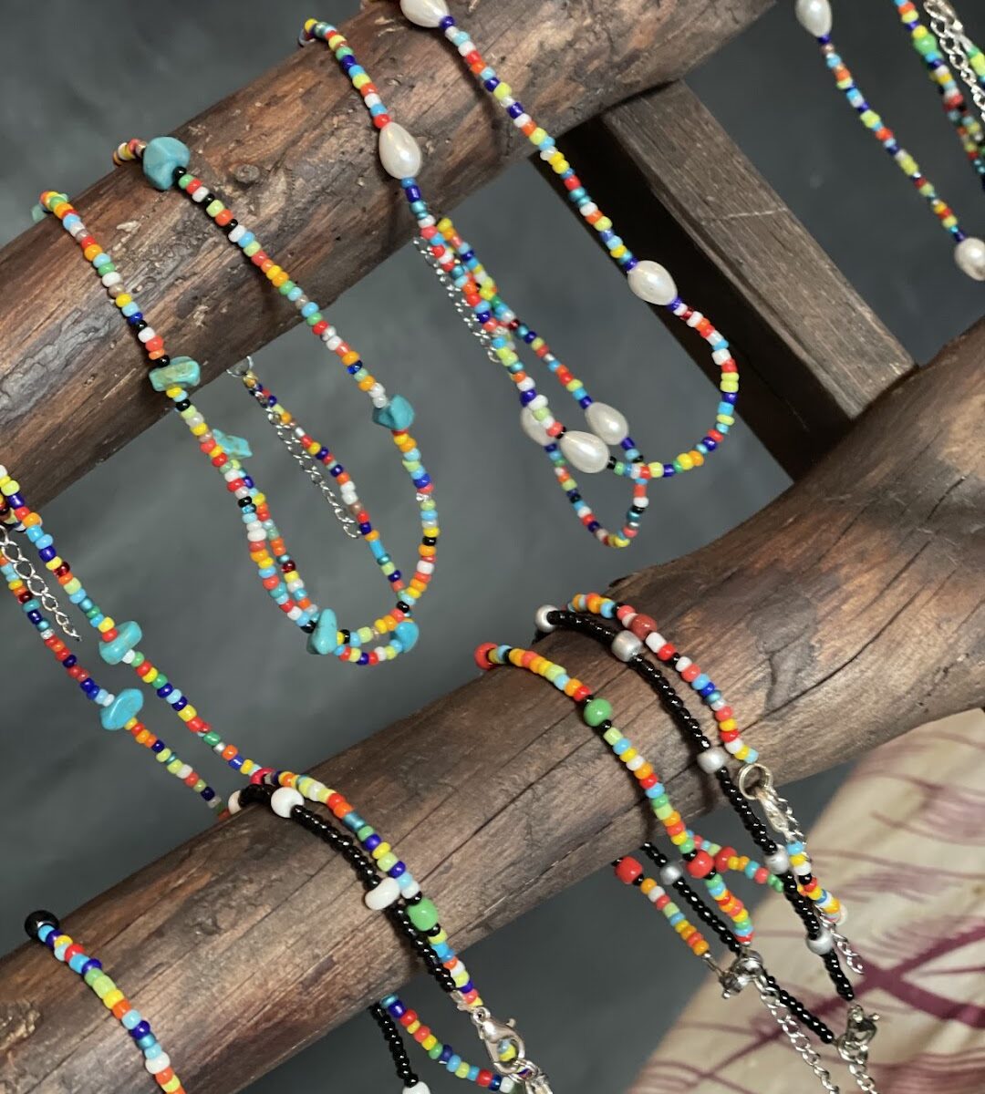 • Bracelet de poignet / cheville, boucles d’oreilles 15€